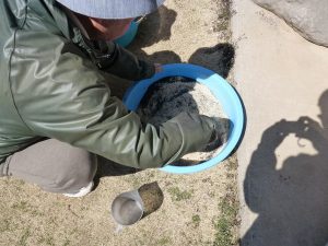 まず、米ぬかと籾殻燻炭をよく混ぜます。