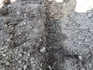 最後に木の板などで土を埋めたところを押さえつけて固めます。