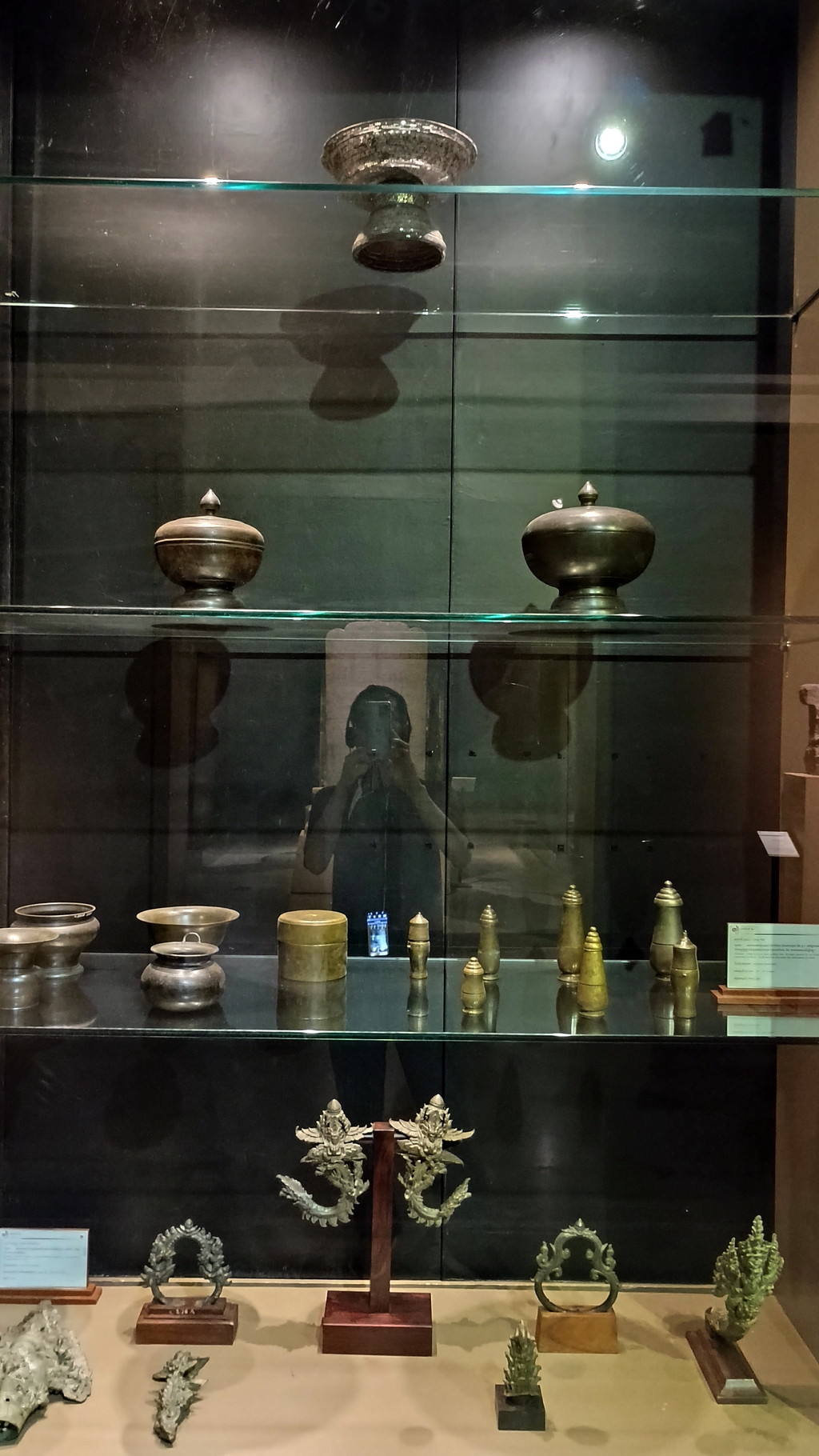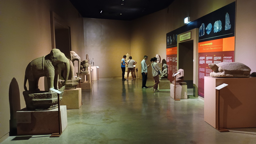 展示室と展示室の間のスペースには、石像やカンボジアの伝統的な仏具などが陳列されています。これらにも、オーディオガイドによる詳細な説明がありました。エアコンはかなり効いていて、少し寒いぐらいだったため、長袖を持って来ておいて正解でした。