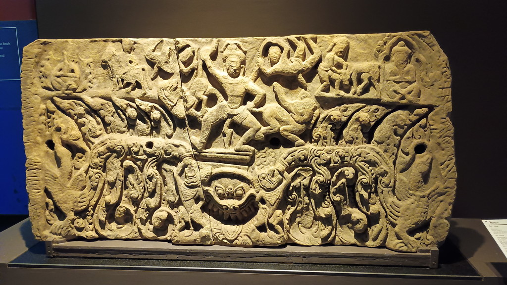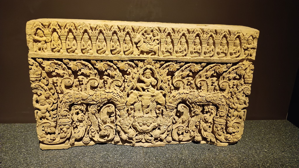 ギャラリーCは「偉大なるクメールの王たち」というテーマで、アンコール王朝の中でも傑出した業績を残した4人の王に関連する発掘品が展示されています。4人の中でも、もうお馴染みとなりましたスーリアヴァルマン2世とジャヤヴァルマン7世の2人がメインとなっています。ここでは、「まぐさ」と呼ばれる開口部の上部に付ける横材の展示が素晴らしく、いずれも見応えがありました。