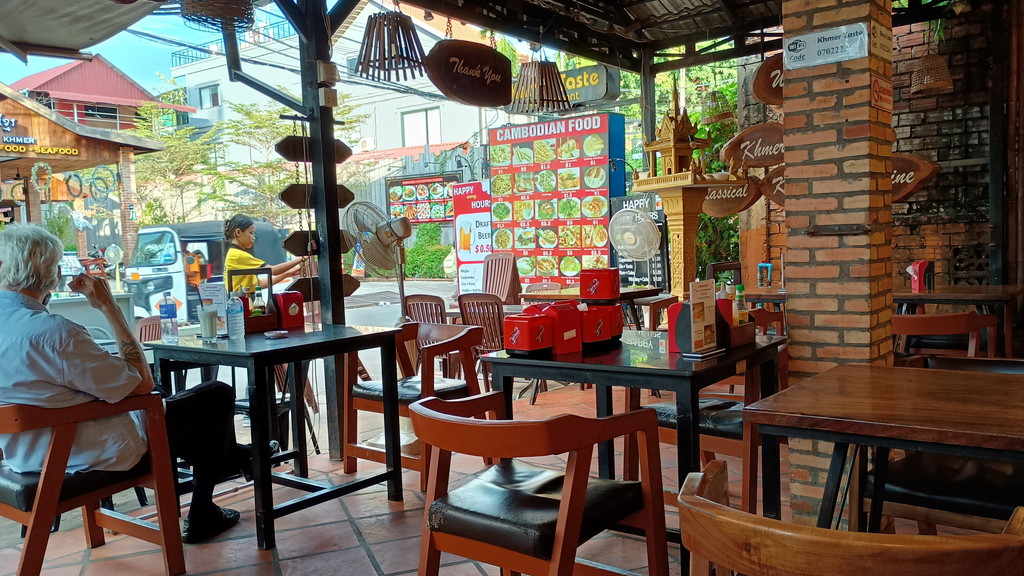 夕飯はオールド・マーケット近くにある「Khmer Taste Restaurant」で頂きました。メニューが豊富で安く食べられることで有名で、ガイドブックやネット上など様々なところで紹介されている有名店です。