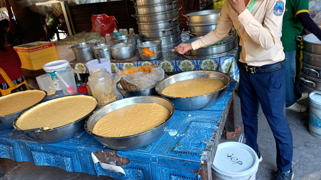 ガイドさんの後を付いてお店の中に入り、簡単にケーキ作りの工程の説明がありました。思った以上に原始的な設備で作っていたのが印象に残っています。ガイドブックの地図を見ると、この通りにはヤシ砂糖農家が並ぶと書いてあるので、お店というよりは工場に近い位置づけかもしれません。