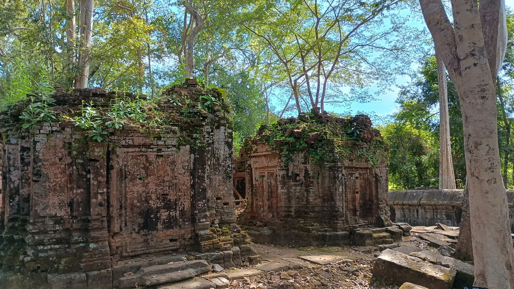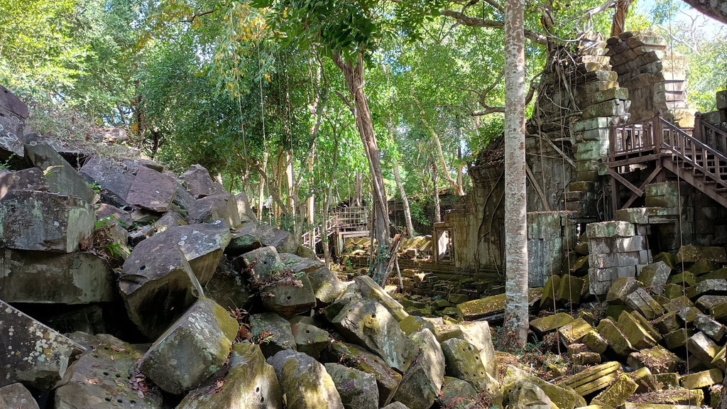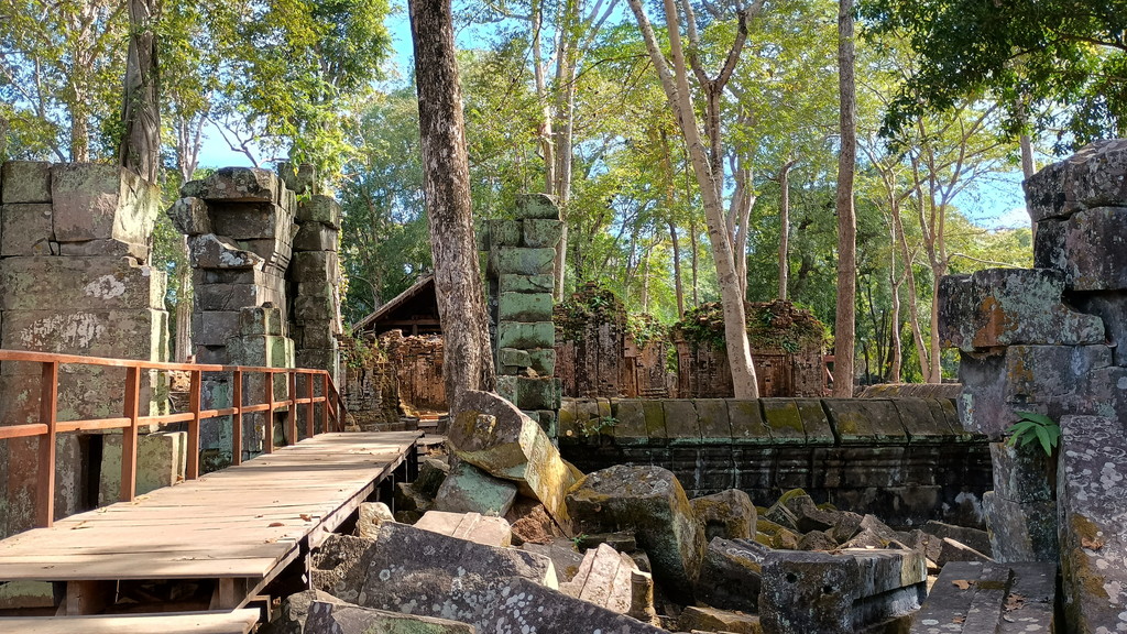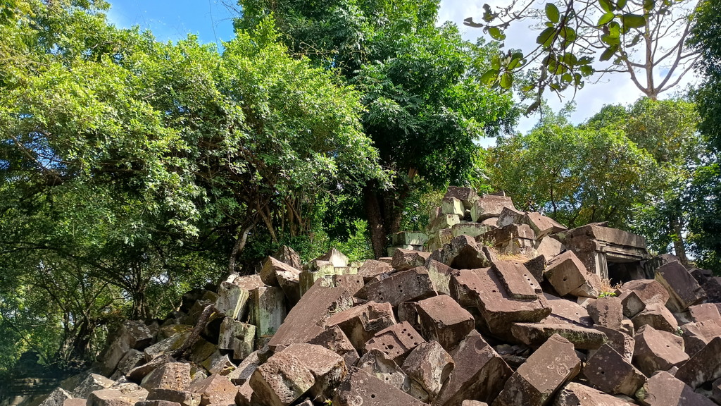 中央祠堂は完全に崩壊していますが、それが何とも言葉に表現できない良い雰囲気を醸し出しており、神秘性すら感じられます。この遺跡は、目で見える部分、物質面から評価した場合の価値はあまり高くないのかもしれませんが、内面には大変響くものがあり、この辺りが、欧米よりも日本人や中国などのアジア圏の人々の心に刺さるのかもしれません。ベンメリアは最後の最後まで訪問するかしないかで逡巡していましたので、来て良かったと感じた瞬間でもあります。