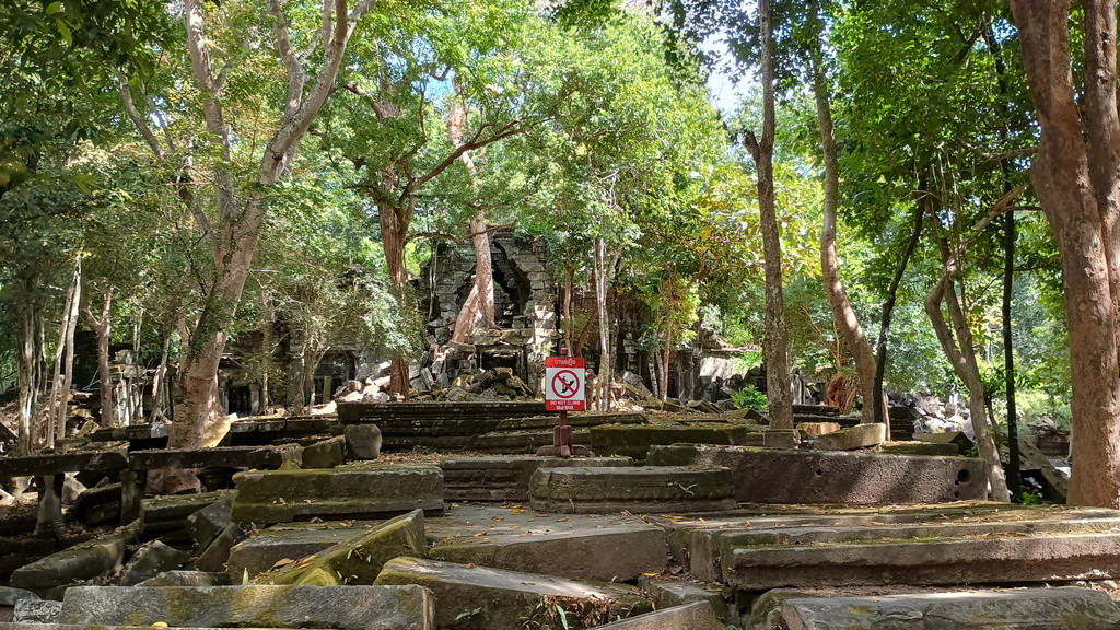 ベンメリアは崩壊している場所が多く、観光するルートが限定されています。このルートが一直線ならいいのですが、所々で曲がったりしたので、後から振り返っても、自分はどの場所にいたのか良く分かりませんw タ・プロームやバイヨン寺院でも同じような感じではあったのですが、ベンメリアはその比ではありません。逆に言えば、森の中に埋まった崩壊した遺跡を探検している実感があり、それがこの遺跡の良さにも繋がっています。