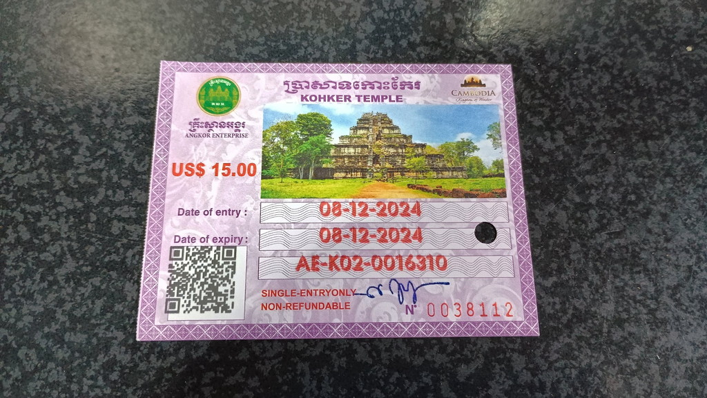 入場チケットにはコー・ケー遺跡群のシンボルでもあるピラミッド型寺院のプラサット・プランが印刷されています。実を言うと、当初コー・ケー遺跡にはあまり興味が無かったので、ほとんど予習をしていなかったこともあり、このピラミッド型寺院の見学だけで終わると思っていました。これだけで15ドルは高いなぁと感じていたのですが、他にも多くの見どころがあったので、意外性という意味ではこの遺跡群がダントツでした。