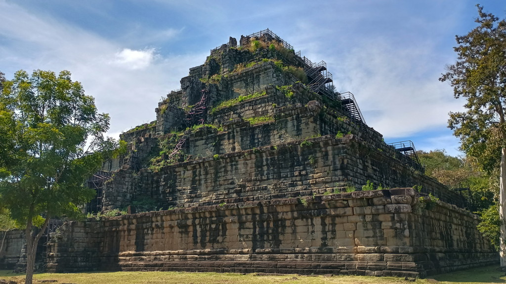 コー・ケー遺跡群は、10世紀の短い期間、アンコール王朝の都となっていた場所です。アンコール・ワットが建造される約190年ぐらい前になります。この王都はコー・ケー出身のジャヤヴァルマン4世によって建造されました。7段から成る約35mのピラミッド型の寺院(プラサット・プラン)が大変有名です。プラサット・トムをはじめとした建築技術は素晴らしく、寺院の装飾に使われたレリーフや彫刻はコー・ケー様式と呼ばれているほどです。