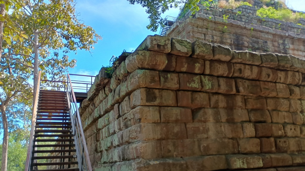 プラサット・プランの北側に回ると、階段が設置されており上に登ることが可能です。アンコール・トムのバプーオンの急峻な階段に比べると、登りやすく作られており、その分段数は多いのですが、年配の方でも何とか上に行くことができると思います。