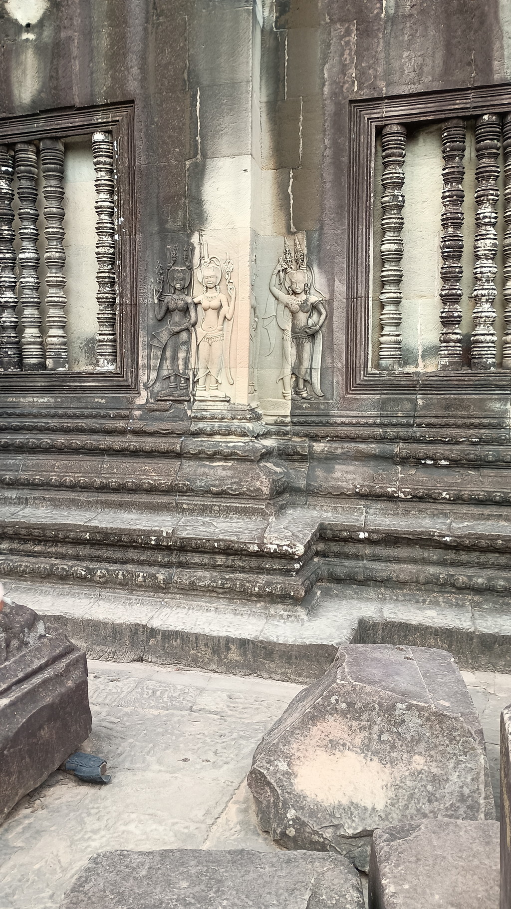 第二回廊から中庭に出ると、壁面に描かれている美しいデバター(女神像)のレリーフがありました。