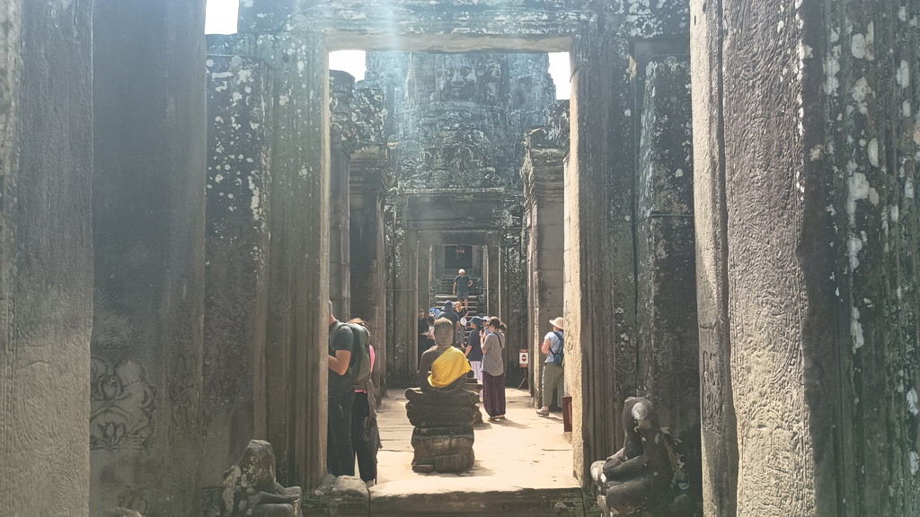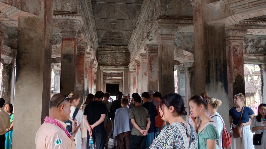 朝日の観賞を終えた観光客が一斉に遺跡の観光を始めているので、大体どこも混雑しています。時間に余裕がないのか、ガイドさんも見どころの一つである十字回廊付近ではあまり時間を費やさず、第三回廊の方に移動しました。