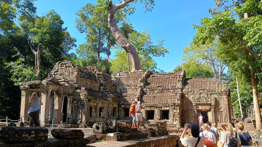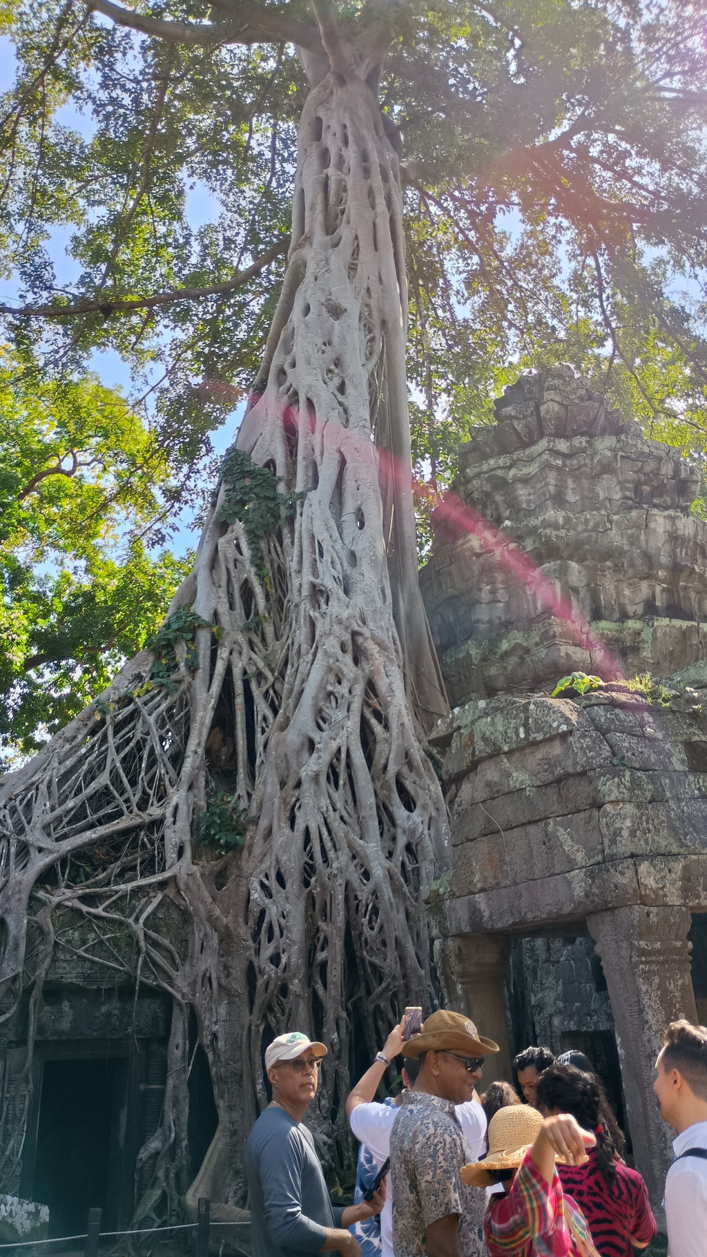 タ・プロームは、ハリウッド映画「トゥームレイダー」のロケ地になったことで有名で、巨大樹の根が遺跡に絡みつくように根を張っているのが特徴で、アンコール遺跡群の中でもトップ3に入る人気があります。ちなみに、私はそこそこ映画を見る方だと思うのですが、トゥームレイダーに関しては見る機会がなく今日に至っています。
