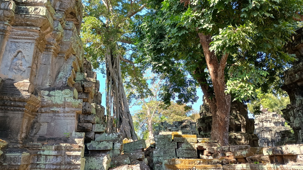 タ・プロームは、後にヒンドゥー教寺院に改宗されてしまい、ヒンドゥー教徒によって、かつて仏像が彫られていた壁面は削られてしまいました。