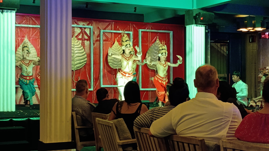 トンレサップ湖からホテルに戻るとちょうど19時になったところでした。今日はシェムリアップ滞在最後の夜、機会があれば行こうと思っていた「ROBAM PUB STREET」というレストランに向かいます。パブ・ストリートにあるカンボジア料理を食べられるレストランですが、カンボジアの伝統舞踊である「アプサラダンスショー」を鑑賞できることで有名です。