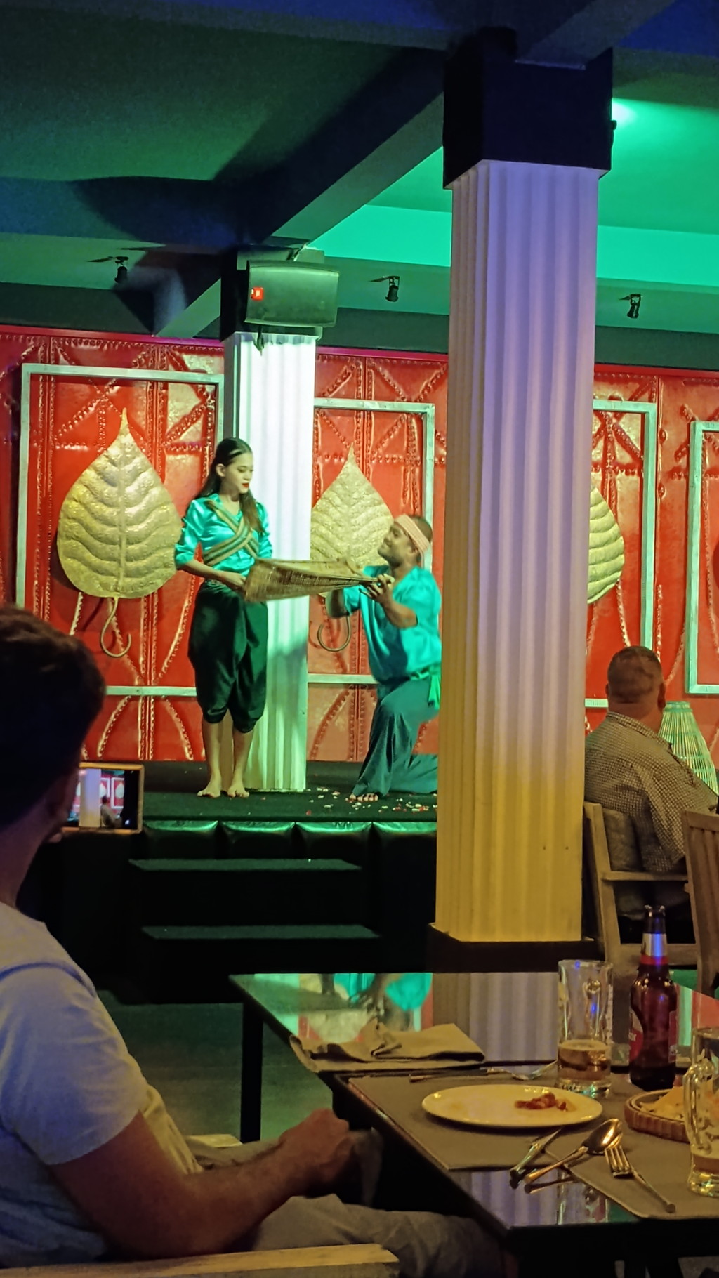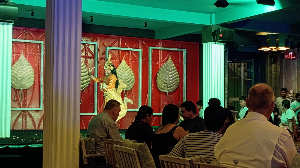 そうこうしているうちに、ダンスショーが始まりました。他のお客さんが大分待っているような状況で、こちらは待ち時間ゼロ、我ながら良いタイミングでした。最初の演目は「祝福の踊り」で、これはお祭りや祝日などで演じる伝統舞踊のようです。