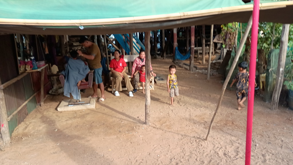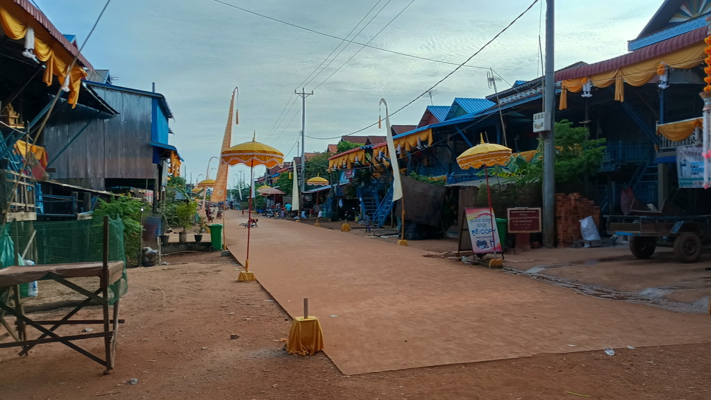ガイドさんに付いて、メインスストリートと思われる通りを歩きました。床屋さんや学校などの建物があり、現地の人々の日常の暮らしに少し触れることができました。ちなみに、雨季になるとこの通りは水没するため、その期間は小舟で移動するようです。文字通り水上集落になるわけです。