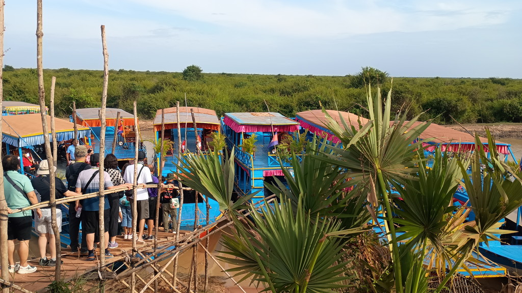 今日は午後から「コンポンプルック 水上集落見学ツアー」に参加します。これは、トンレサップ湖の湖畔で水上生活を営むコンポンプルック村を見学し、湖に沈む夕日を鑑賞するツアーです。トンレサップの「トンレ」は「河川」、「サップ」は「巨大な淡水湖」を意味し、名前が表す通り東南アジア最大の淡水湖です。季節によってトンレサップ川からの流入流出が入れ替わることにより、雨季(5~10月)と乾季(11~4月)で面積が3倍以上変化するため、「伸縮する湖」とも呼ばれています。豊かな生態系はカンボジアの人々に多大な恵みをもたらし、湖からの漁獲量はカンボジアの全体の6割を占めると言われています。正直、水上集落にはあまり興味が無かったのですが、カンボジアという国を理解する上で、トンレサップ湖を見ておくことは重要だと考えていました。湖だけを見るのであれば、トゥクトゥクをチャーターするなどの方法もあるのですが、個人で現地に行ってチップを要求されたり、ボッタくられたという報告もチラホラ見かけたので、これらのトラブルを避ける意味もあり、現地ツアーを利用しました。