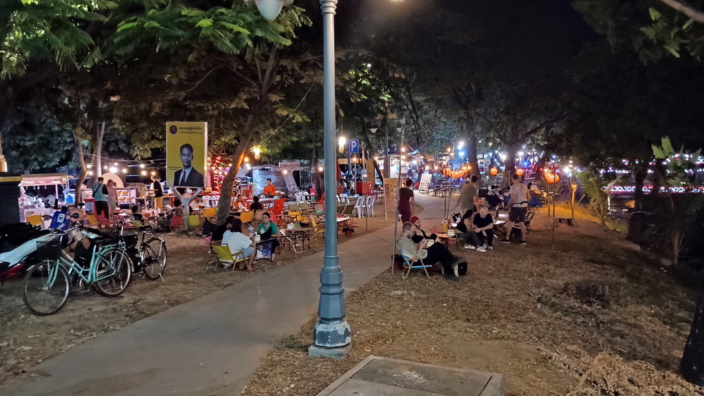 シェムリアップ川の方も賑やかでした。屋台が集まっている通りには多くのお客さんが食事を楽しんでいました。この後は、シェムリアップの最後の夜の景観を楽しみながらホテルに戻りました。
