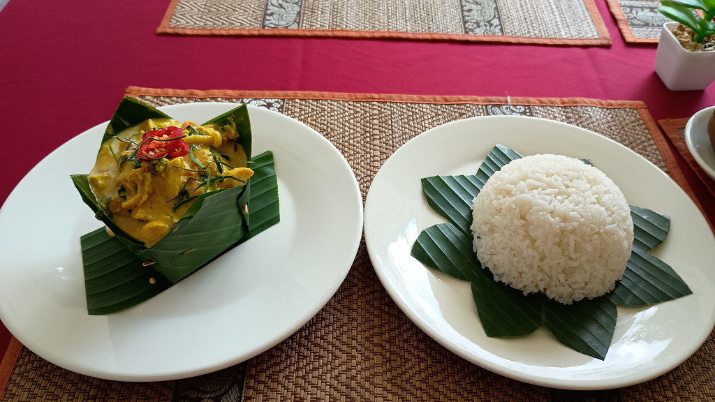 ほどなくして、アモックも運ばれてきました。葉っぱの器という見た目の工夫が凝らされています。前回頂いたアモックはもう少しスープっぽかったので、同じアモックでも、お店によっても大分違うのだなと感じました。こちらのアモックもマイルドな味付けで食べ易く、大変濃厚で美味しかったです。個人的にはチキンとの相性が抜群で病みつきになる味です。お店の雰囲気良し、料理良し、値段もリーズナブルで、もっと早くこちらのレストランに来ていれば良かったのですが、時間的にもう訪問する機会が無いのが悔やまれます。ネットやYoutubeでは全く紹介されていなかったお店ですが、こういう隠れた名店を発見できたのは幸運でした。