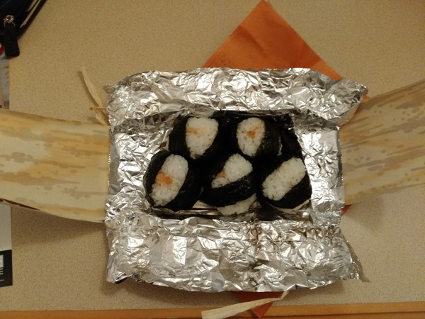 セントレア内にあるレストラン街の「めいふつ 天むす 千寿」というお店で、天むす5個セット(700円)を買い、今晩宿泊するホテルに移動します。