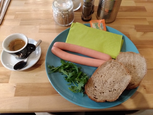 が挙げられます。また、スタッフが親切で外国人観光客慣れしているので、コミュニケーションを取るのが楽でした。荷物を預けて身軽にし、ついでに朝食も済ませました。エスプレッソ、パン、チーズ、ソーセージとシンプルな内容です。