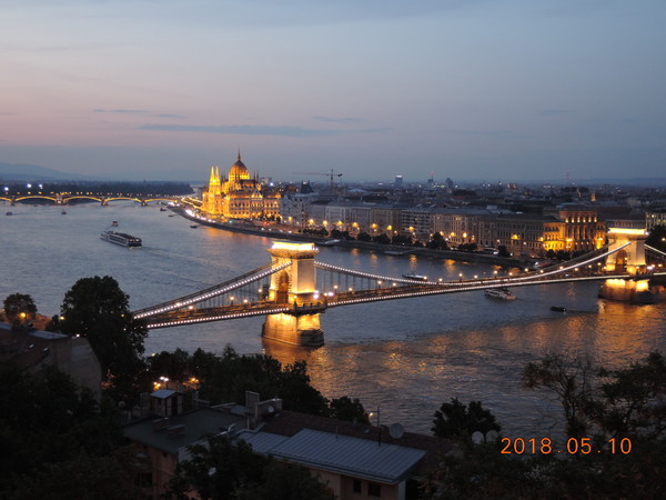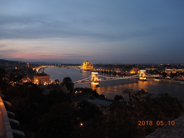 20時少し前にブダ王宮の展望台に着き、ドナウ川の景色を眺めながら日没を待ちます。夜景目当ての観光客も大勢いました。夜景は素晴らしいの一言でいつまでも見飽きることがありませんでした。