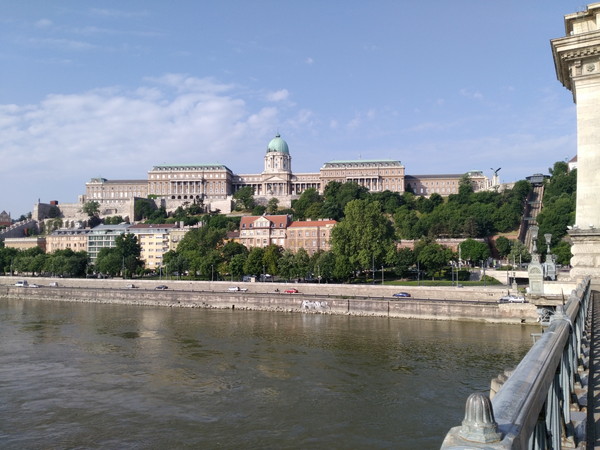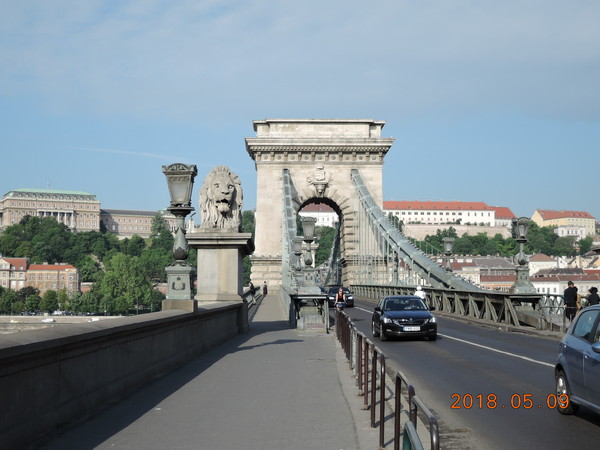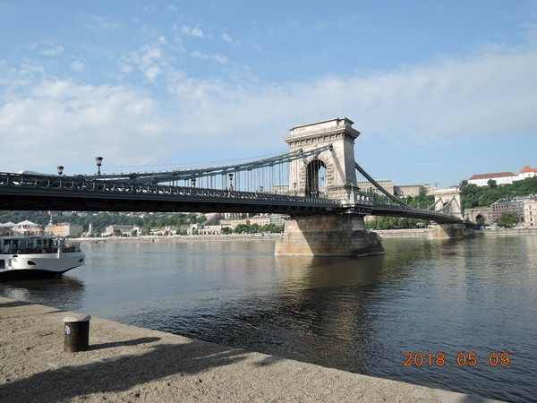 朝食を頂いた後は、昨日に続き今日も王宮の丘に向かいます。今日のお目当てはマーチャーシュ教会の見学です。同じルートで行っても面白みがないので、今日は地下鉄で「Vörösmarty tér」まで移動し、徒歩で鎖橋を渡ってみました。