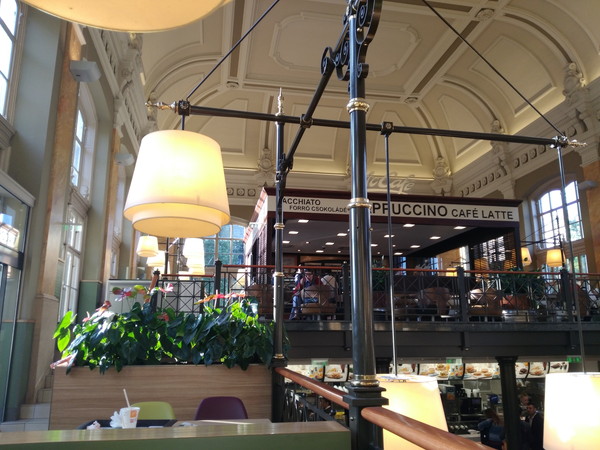 駅舎に隣接してマクドナルドがあります。この重厚感溢れる建物に黄色い「M」のロゴマークという不思議な組み合わせが観る者を誘います。店内はクリーム色を基調とした美しい内装で、天井が高く広々としており、さながら高級カフェという雰囲気です。
