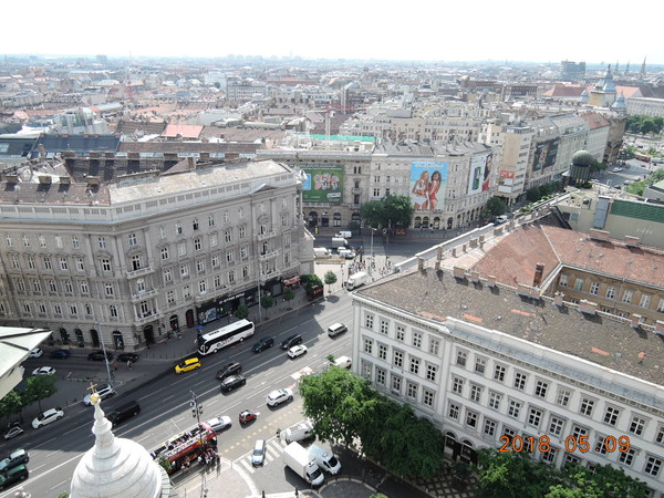 また、別途600HUF払うと展望台(Cupola)に登ることができます。チケット売り場の年配女性が不愛想で一苦労、ここに来て初めて元社会主義国の洗礼を受けます。展望台へはエレベーターと階段を利用するのですが、階段が急で体力的にきつかったです。展望台からはデアーク・フェレンツ広場などの中心部を一望できます。街中をちょこまか走る車がミニカーみたいで見ていて飽きません。