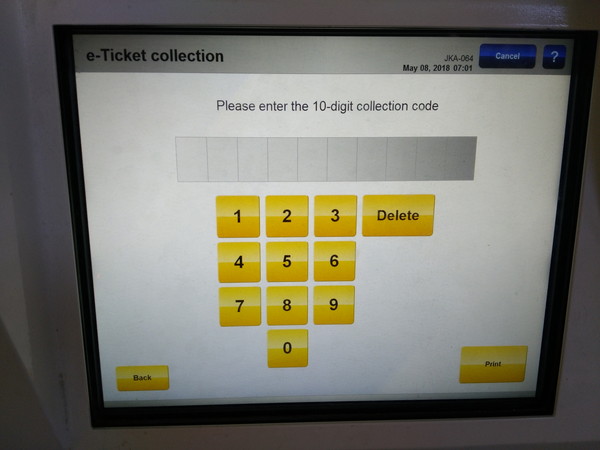 ネット購入した場合は駅構内の自動券売機で発券する必要があります。手順は簡単で、ネット購入時に入手した予約番号10桁を入力するだけです。とまあ、いとも簡単に書いていますが、本当に乗車券を入手できるのか不安だったので、2日前に東駅に来て発券しています。。。