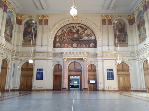 こちらは「Thököly」という通り側にある入口です。入口から中に入るとフレスコ画のあるホールになります。こちらもいいですね。