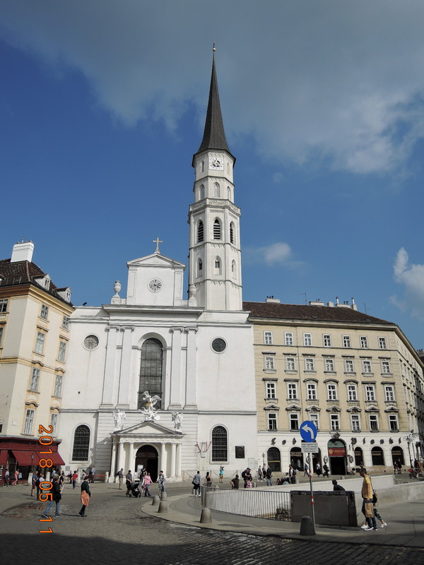 グラーベン通りをしばらく進み、突き当りのコールマルクト通り(Kholmarkt)を左に進むとホーフブルク王宮が見えてきます(約10分)。ホーフブルク王宮は13世紀後半から600年以上にわたってハプスブルク家の居城としてきたところです。王宮の前は聖ミヒャエル広場、広場を挟んで聖ミヒャエル教会があります。
