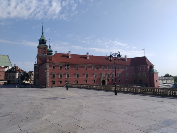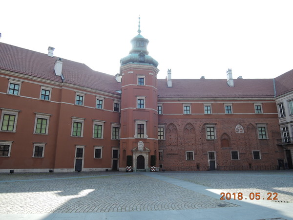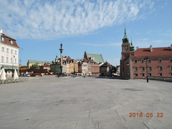ワルシャワ歴史地区は「旧市街」と「新市街」から成り、今回は旧市街を中心に観光します。バス停留所から北に少し歩くと王宮広場が見えてきます。広場中央にあるのは1596年にポーランドの首都をクラクフからワルシャワに遷都した「ジギスムント3世の碑」です。
