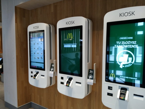 公園での散策を終えるとお昼の時間でした。公園前のバス停留所「Plac Na Rozdrożu」で116番の市バスで来た道を戻り、停留所「Ordynacka」で降車、すぐ側のマックで昼食です。何故、ここにきてあえてマックにしたかというと先日クラクフ滞在時、マックの前を通った時セルフレジ(セルフサービスキオスク)で注文している光景を見て気になっていたからです。日本でもいくつかの店舗では導入されているようですが、この目で実際に見たのは初めてです。海外でもマックでの注文は比較的簡単にできますが、それでも上手く言葉が通じなくて想定外の物が出されてくるなんてことがたまにありました。セルフレジであれば、そのような誤注文が防げますし、何より自分のペースで注文できるので店員さんの前であたふたすることもありません。クレジットカードで決算するのが基本ですが、今回は現金決済にしました。注文完了時に印字されたレシートをカウンターに持って行くと店員さんが清算してくれます。後はカウンター上方の液晶モニターにレシートに書かれた番号が表示されるのを待つだけです。番号が表示されたら店員さんにレシートを渡すと商品が出されます。タッチパネルの操作は慣れが必要なものの店員さんとのコミュニケーションが最低限で済むのは楽だと感じました。ただ、あれですね、あたふたしながら店員さんとやり取りするのも一つの経験だと考えれば、こうして人間はまた一つ楽をすると同時に弱くなってしまうんだろうなーと思います。SF映画のように人間が機械(システム)に支配される未来が近づいているのを肌で感じました。