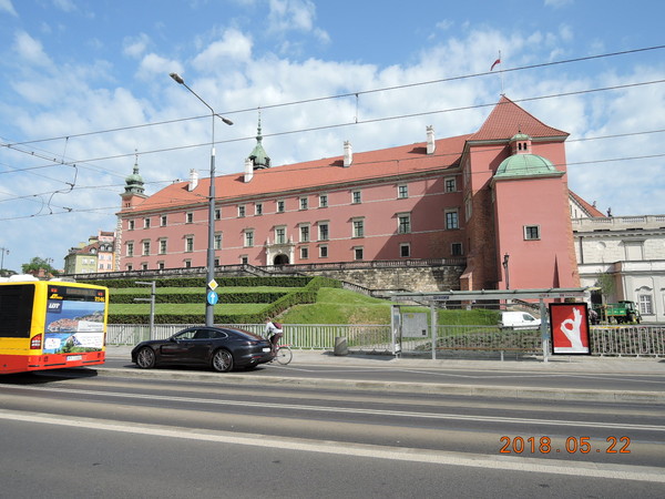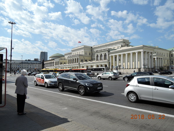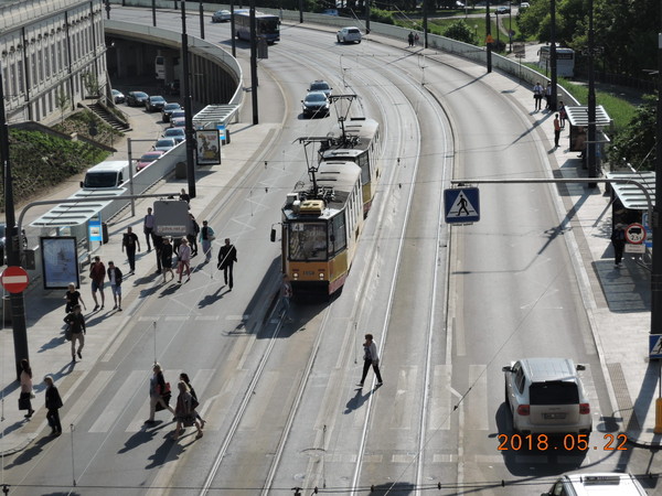 ワルシャワ歴史地区はホテルの北に位置し、最寄りのバス停留所「Foksal」から116番や180番等の市バスで簡単に行けてしまいます。時刻はまだ8時を過ぎたあたり、バス停留所には通勤や通学と思われる地元の方々が大勢待機しています。停留所がある新世界通りは多くの路線が運行しており頻繁にバスがやって来ては出て行きます。歴史地区近くを通る市バスは快速を含めて多くあるので番号を確認してから乗車することが重要です。ブダペストでも乗ったのですが、日本では見慣れない2両編成のバス、運転するのが大変そうです。