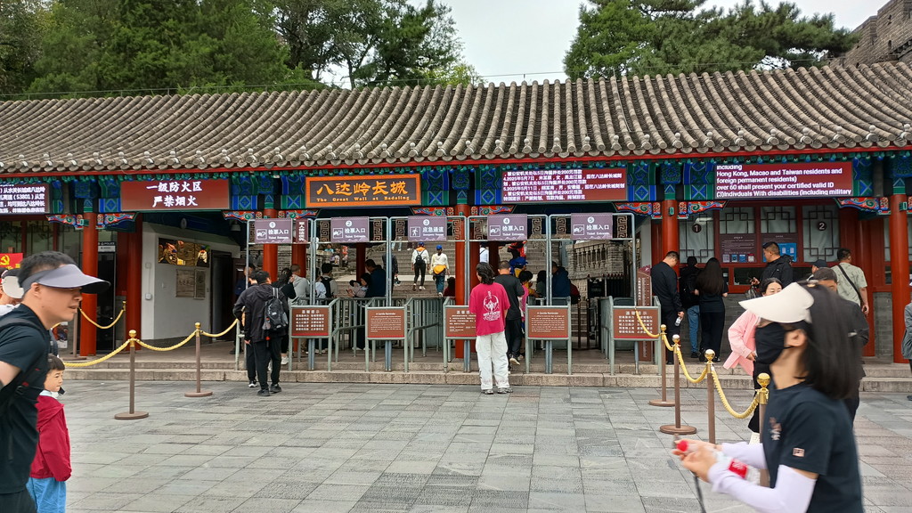 しばらく下り坂を進むと「八達嶺文化街」と呼ばれる宿泊施設やレストラン、お土産屋さんなどが並んでいる通りがありました。街という名前に恥じず、個人で営業しているお店以外にも、有名ファーストフード店や、銀行の支店などもあり、何から何まで一通り揃っている印象です。この途中に荷物預かり所があるので、大きなリュックサックを預けて身軽になります。この時間帯は利用者が少なかったようで、当初建物の裏にあるセルフロッカーを使うように指示されたのですが、私のネットワーク環境(チョコsim)では、ロッカーに印字されているQRコードを読み込んでも先の画面に接続できず、エラーが発生して手続きができませんでした。スタッフの男性にエラー画面を見せたところ、建物内の荷物スペースに置いてもらうことになりました。料金は無料で、氏名やパスポート、電話番号等の情報を記入する必要があります。また、荷物は16時までに取りに来る必要があります。手続きが完了すると、数字が入った札を受け取りました。