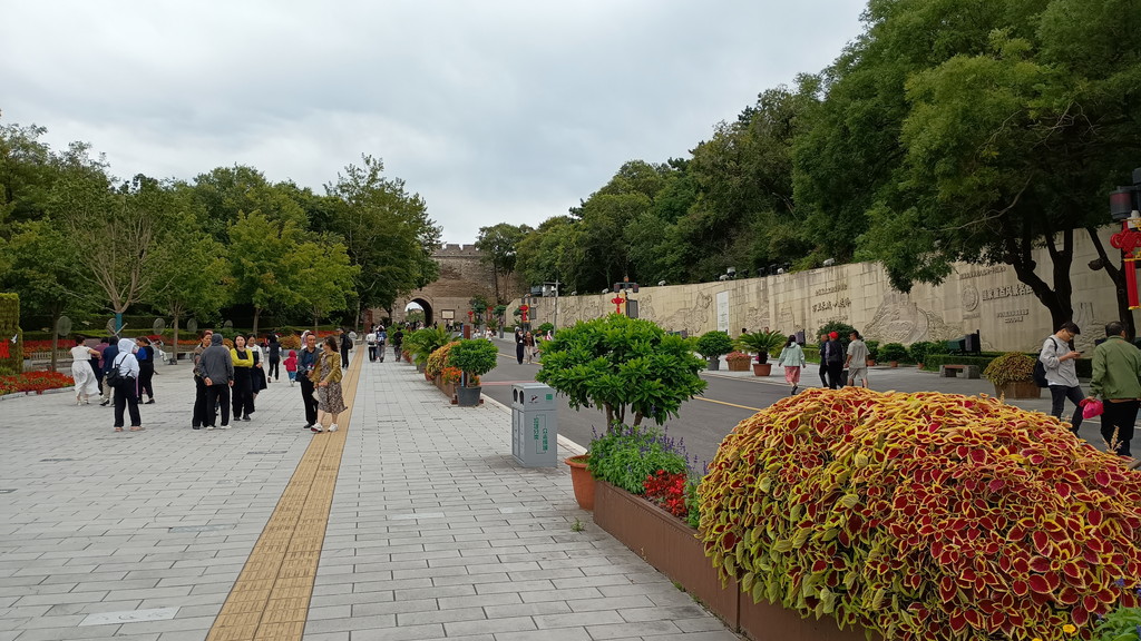 荷物検査場を抜けると、通りの脇には「和平公園」があり、その先には「北門鎖鈅(北门锁钥)」と刻まれた西門が見えてきました。西門は明の時代1582年に建造され、「北門鎖鈅」という名前は、宋代の政治家「寇準(こうじゅん)」の故事に由来します。1004年に宋(北宋)と契丹族が興した遼の間に結ばれた「澶淵の盟」という歴史的に有名な盟約があるのですが、この時、盟約の立役者として主導的な役割を果たしたのが寇準です。