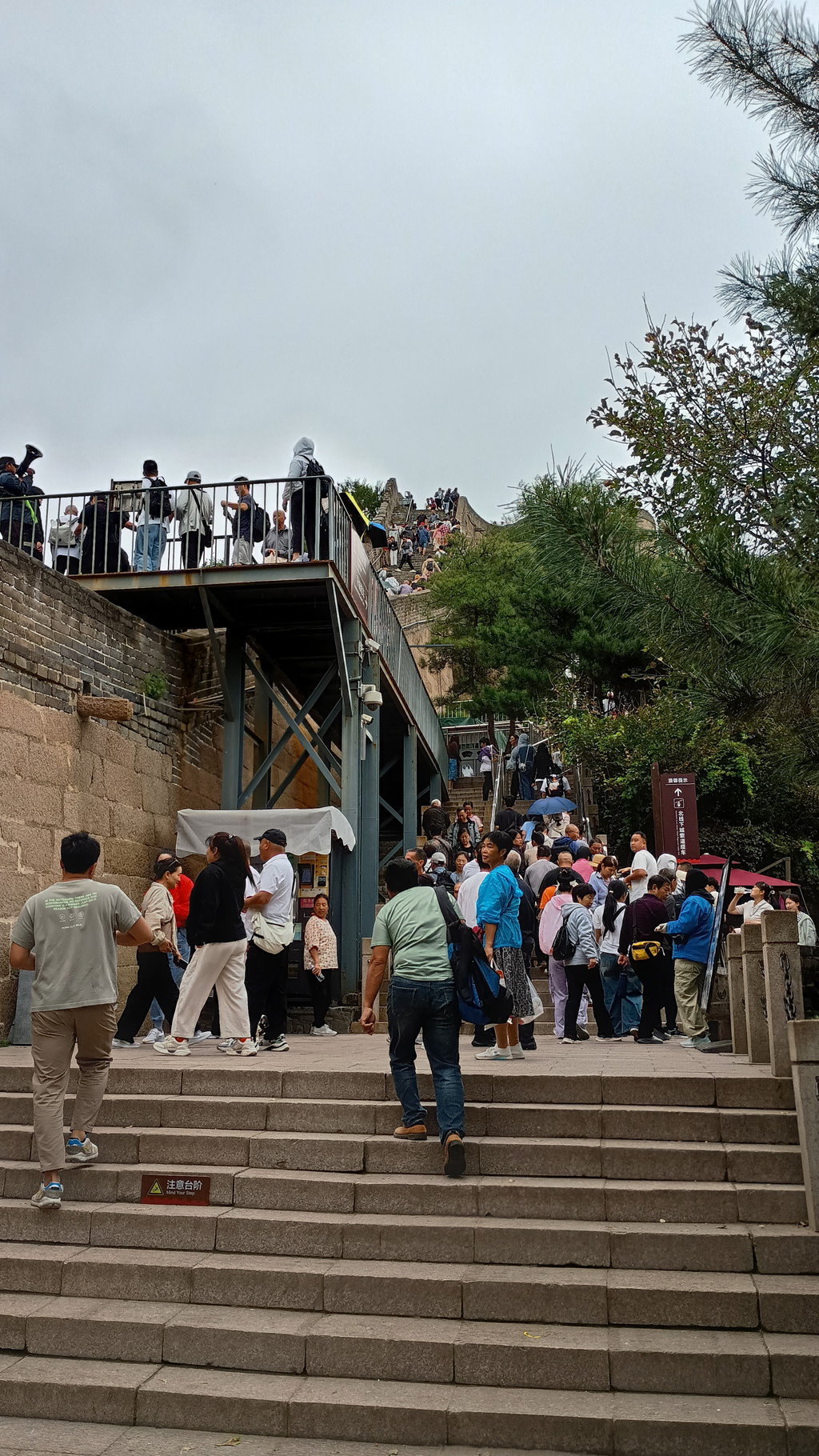 北7楼まで来たところで、雨が降り始めました。北7楼から北8楼の間は険しい勾配があり、遠目にもかなり混雑しているのが見えたので、最後の最後で滑ってケガをするのも嫌だったこともあり、潔く引き返すことを決意します。入口から北7楼まで約40分ぐらい掛かりました。ゆっくり登城しても、片道1時間あれば北8楼までは行けることが分かりました。