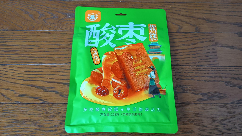 改札の時間まで余裕があったので、待合室の中にあるお土産屋さんを覗いて、山西省特産と書かれた「酸枣軟糕」というお菓子を購入しました。中国で栽培されているナツメをソフトケーキにしたものです。料金は12元(約250円)でした。