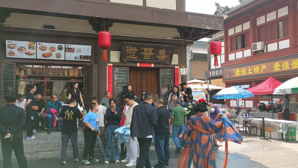 旅館のすぐ側には「喜晋道麺館(喜晋道面馆)」という刀削麺のお店があるのですが、地元でも有名なお店らしくて、いつ行っても混雑しており、何十人も待っているお客さんがいました。一回ぐらいは入るチャンスがあると思ったのですが、縁が無かったようで入店することなく終わりました。