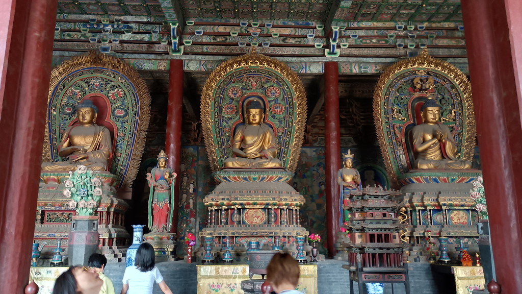 上華厳寺の正殿が「大雄宝殿」です。遼の時代、1062年に創建され、1122年に焼失した後、1140年に再建されました。中国に現存する最大の木造宗教建築物です。また、屋根にある一対の龍の形状をした装飾は4.5mの高さがあり、これは中国の初期建築における最大級の屋根飾りです。
