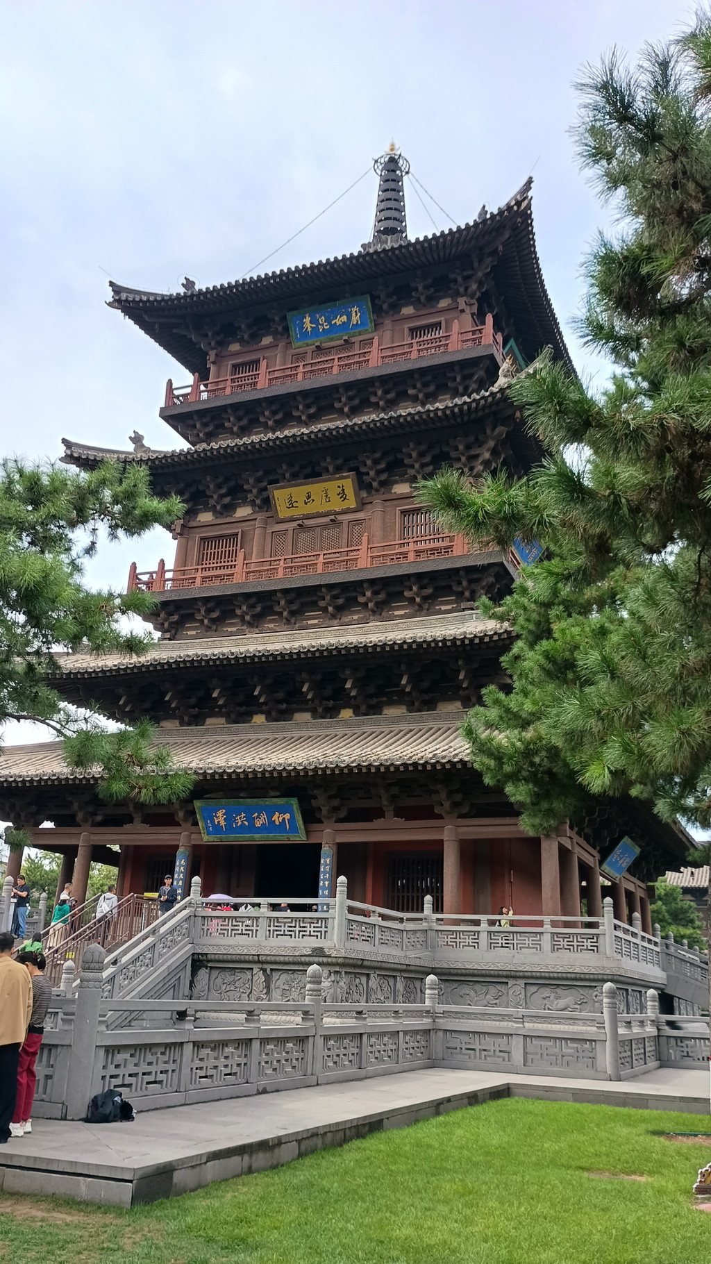 華厳宝塔(华严宝塔)は、遼から金の時代に建てられた、中国で2番目に高い木造塔です。高さは43.5mの7層構造です。外からは5層が見え、地下宮殿と天宮を合わせると7層となります。