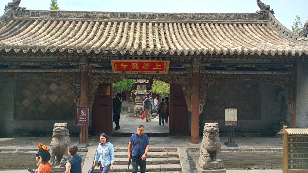 まずは、旅館のすぐ近くにある「華厳寺(华严寺)」に向かいます。東西に走る大通り「清遠街(清远街)」を少し西に歩くと牌楼があり、これをくぐると「華厳広場」と呼ばれる大きな広場が見えてきました。