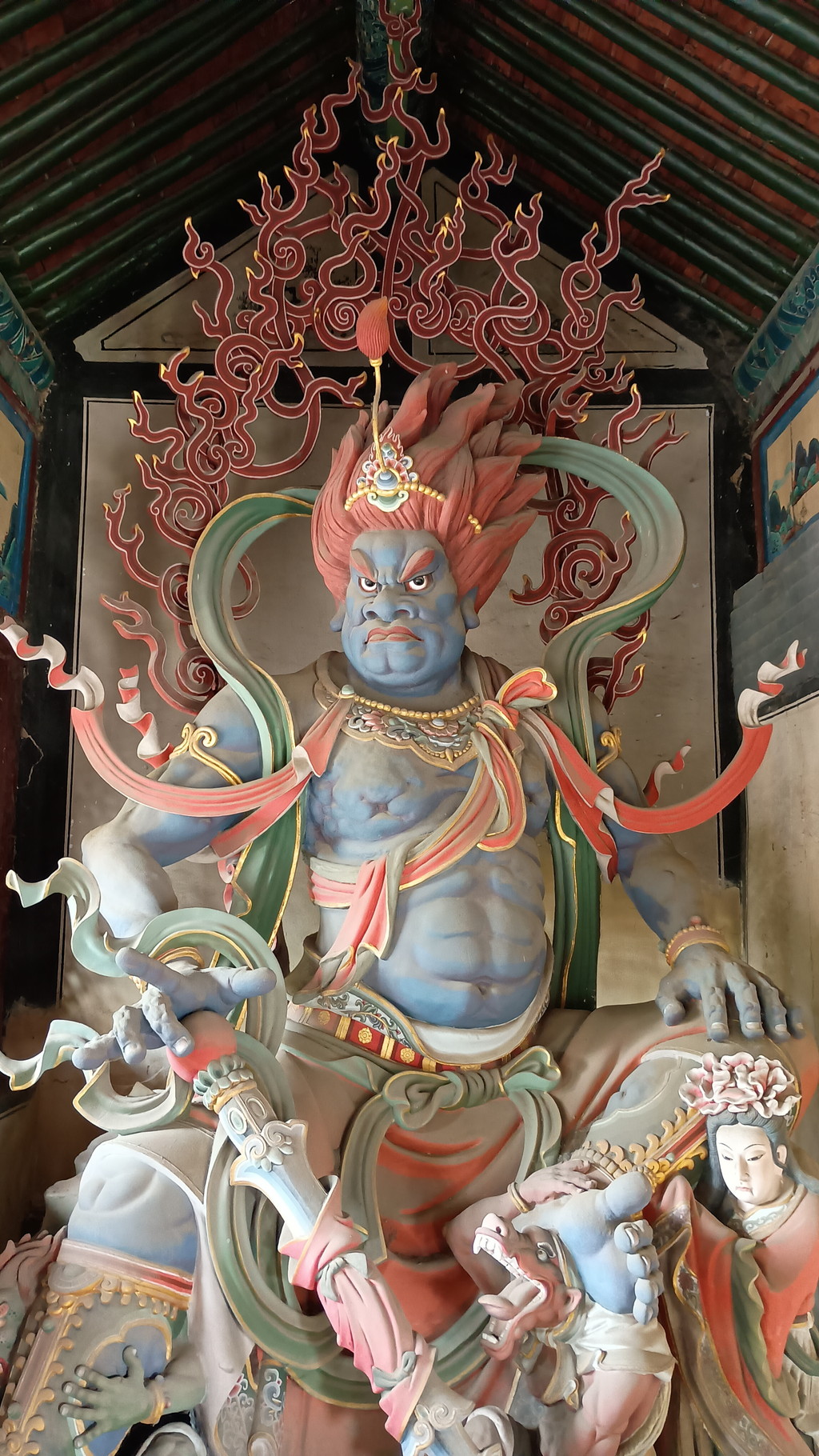 入口を入ったところに見事な彩色塑像が2体安置されていました。こちらは解説が無く、名前なども不明ですが、山門を守護する金剛力士像だと思われます。