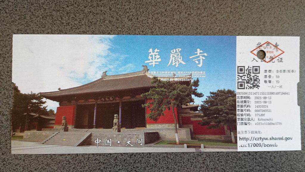 今日は太原から山西省北部にある「大同」に移動します。省都の太原に次ぐ山西省第二の都市である大同は、古来より北方への要衝として機能し、多様な民族、文明の節点として発展してきました。特に南北朝時代は、北魏の都が置かれ、洛陽に遷都するまでの約100年間、政治、経済、文化の中心として栄えました。北魏の歴代皇帝は仏教を篤く信仰したことから(実は仏教を弾圧した皇帝もいます!)、仏教文化が花開き、雲崗石窟を始めとする多くの歴史的建造物が残っています。