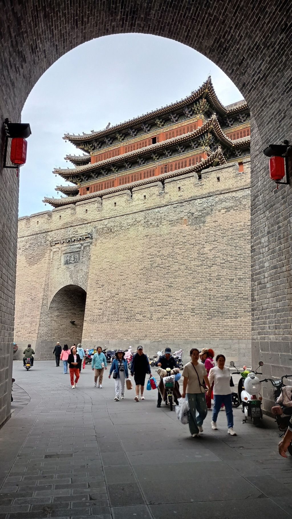 清遠門は2重構造となっており、内側の城門から出ると、外側はコの字を左右逆にした形状で城壁で囲まれており、外側の城門と通路で繋がっていました。西門の外側は繁華街があるため、人出は多く、多くの地元の方々や観光客の姿で賑わっていました。