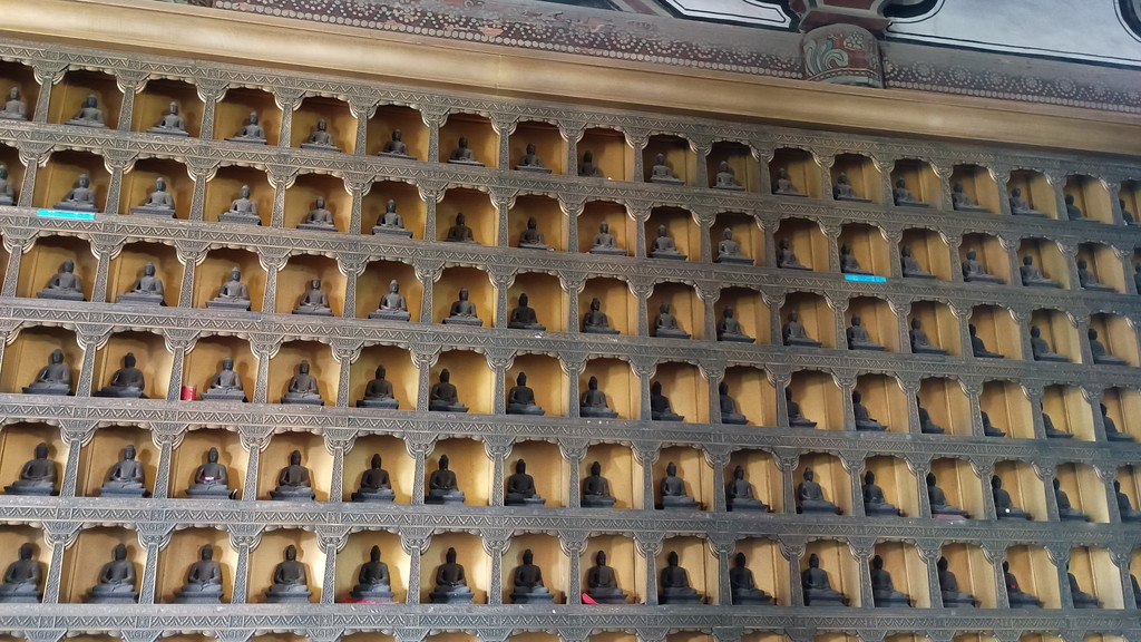 千仏殿には中央に主尊の仏像、左右にそれぞれ3体ずつの仏像が安置され、さらに両側の壁には800体を超える仏像が安置されています。