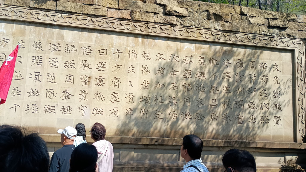 第1窟の手前には、「比丘尼昙媚造像碑文」の複製が置かれていました。1956年に、第20窟前の崩落岩層から出土したもので、原本は現在、雲崗博物館に所蔵されています。北魏の時代、503年に彫刻されたものとされており、平城(現在の大同古城)における尼僧の造像活動を記録したものとなっており、北魏時代の碑文の傑作であり、高い芸術性が評価されています。