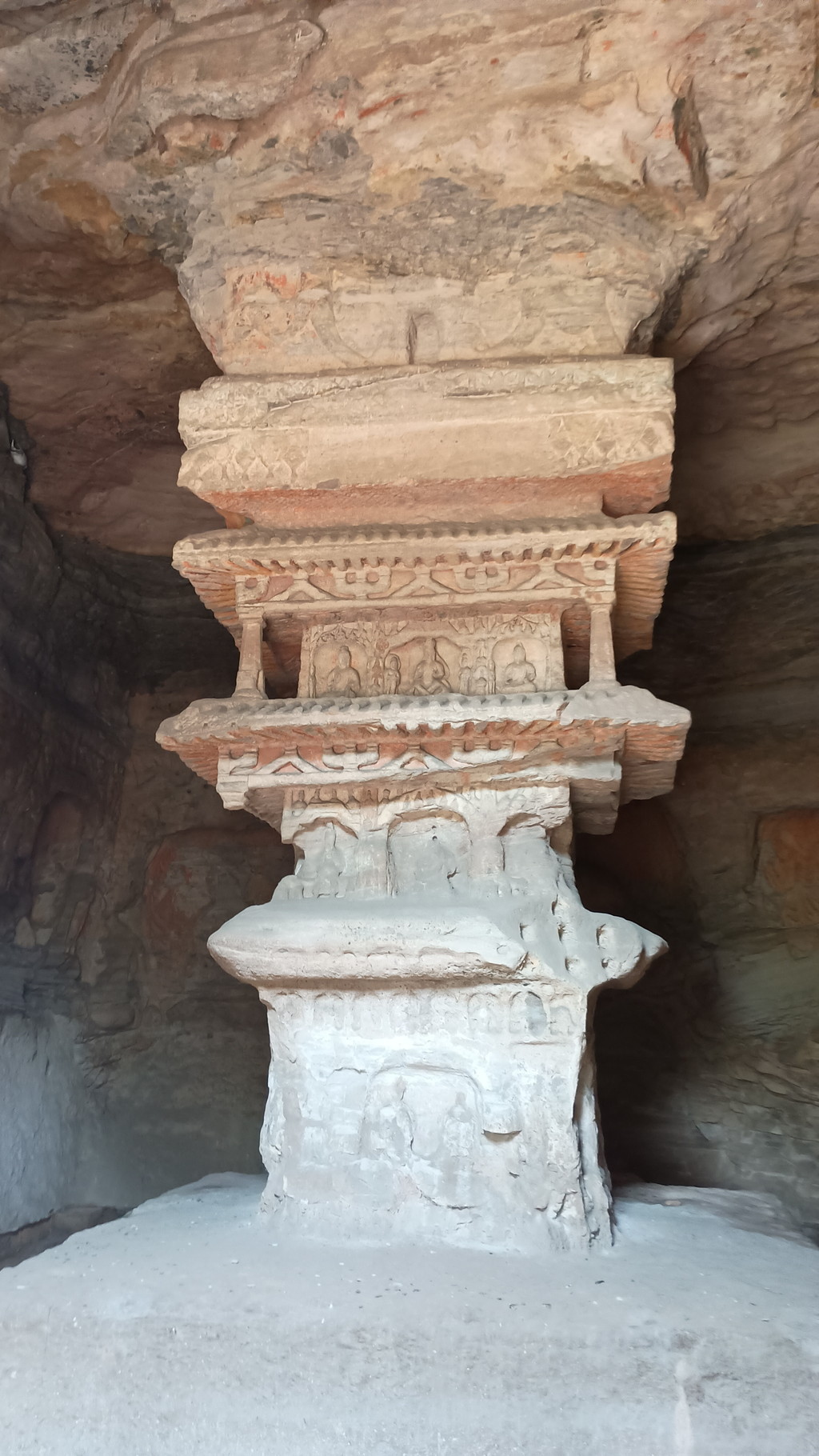 第1窟は通称「石鼓洞」と呼ばれ、洞の中央に石柱が立っているのが特徴です。