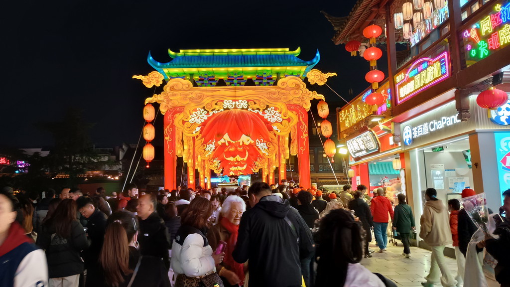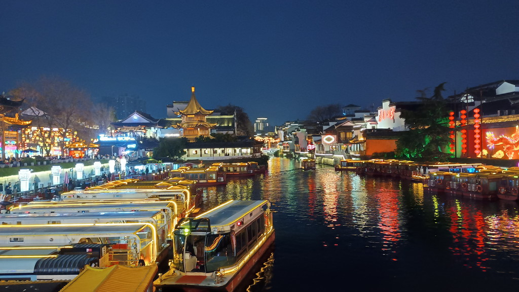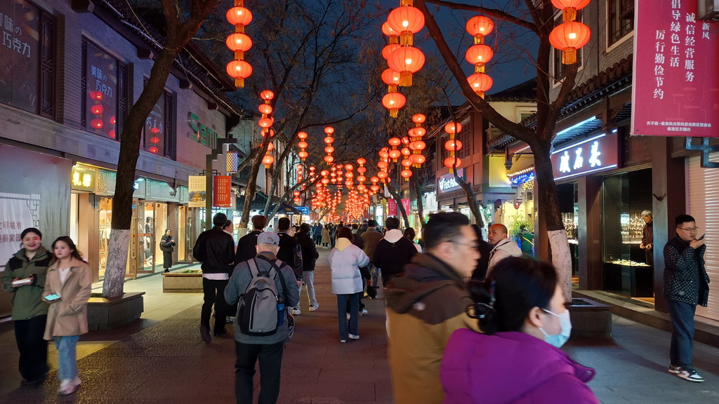 ホテルでしばらく休憩した後は、体力的にはまだ余裕があったので、南京最後の夜を再び夫子廟で過ごすことにしました。夜になってからの訪問は初めてでしたが、日中の時よりは明らかに観光客が多く、どこもかしこも賑わっていました。