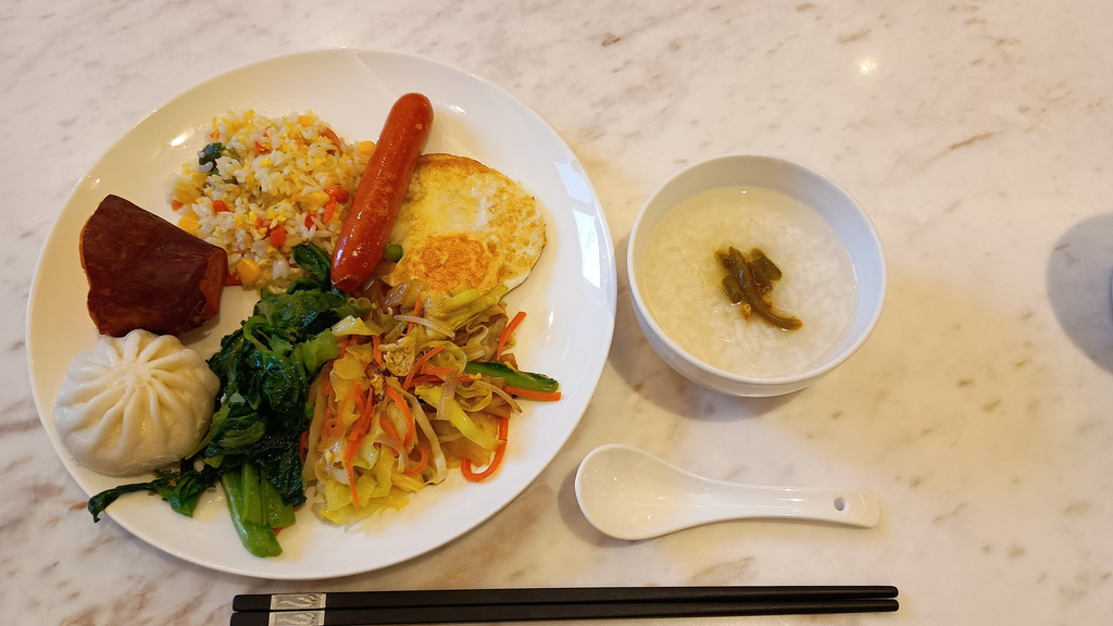 今朝の朝食では、初めて目にした黄色いお粥を食べてみました。普通のお粥と比べると、米粒が小さく甘みがありました。後から調べたところ、確かに小米と呼ばれる粒の小さいお米を使ったお粥で、中国では良く見かける食べ物のようです。