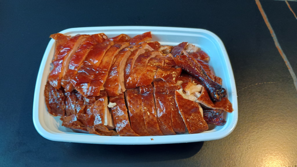 店員さんとのやり取りは多少の苦労がありましたが、翻訳アプリと身振り手振りで何とかなりました。1羽まるまるはさすがに量が多いと思ったので、半分にしてもらいました。料金は約36元(約800円)です。これに醤油ベースのソースが入った袋が付いてきました。